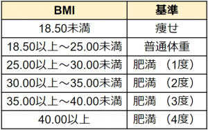BMIが25を超える方は注意が必要です。まずは25未満を目指しましょう。