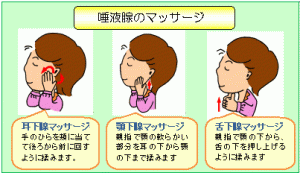 の真下の部分をマッサージしたり温めることで、唾液が十分に出ます。